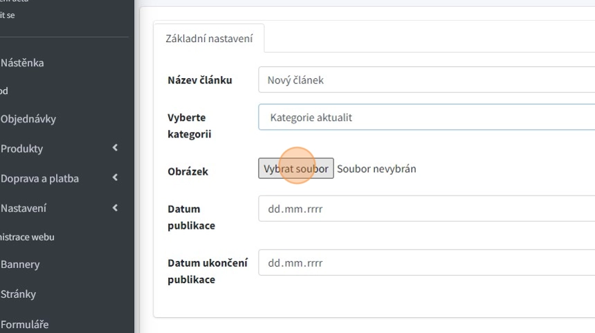 4. Pole "Obrázek" pro nahrání náhledového obrázku článku.