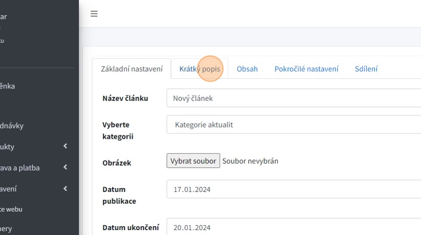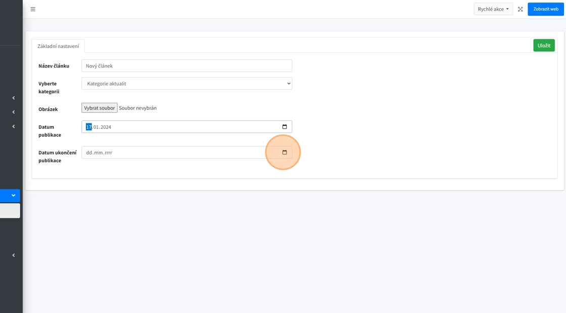 6. "Datum ukončení publikace" - kdy bude článek na webu zneviditelněn.