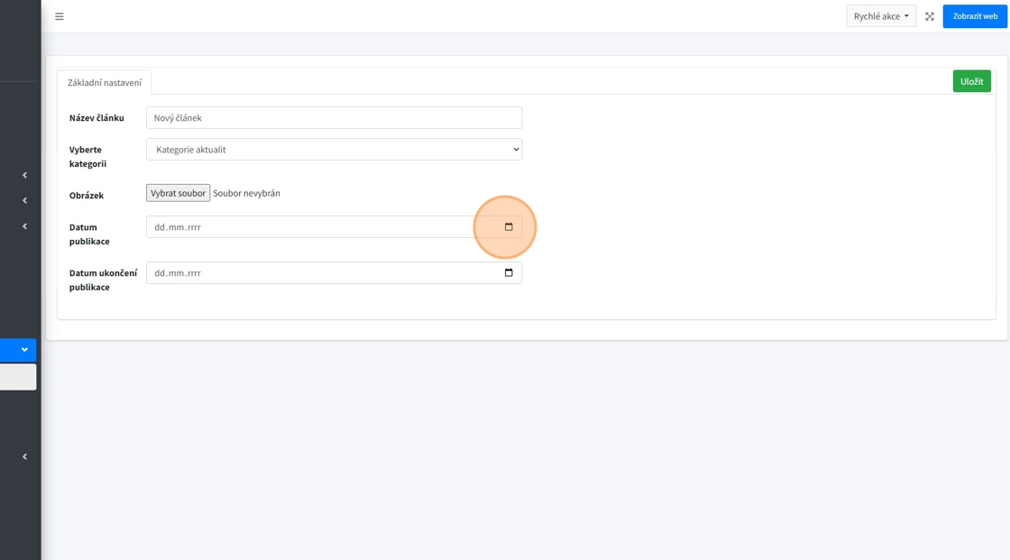 5. "Datum publikace" - kdy se článek na webu zobrazí