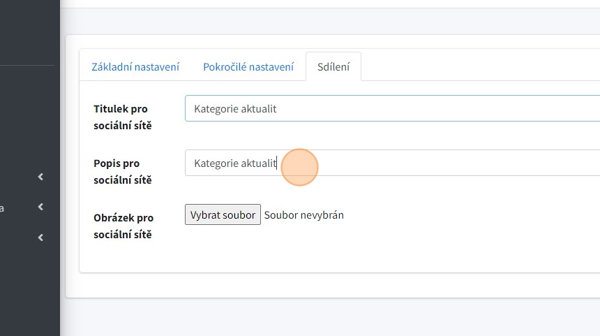12. "Obrázek pro sociální sítě" - - pole pro nahrání obrázku, který se zobrazí při sdílení na sociálních sítích