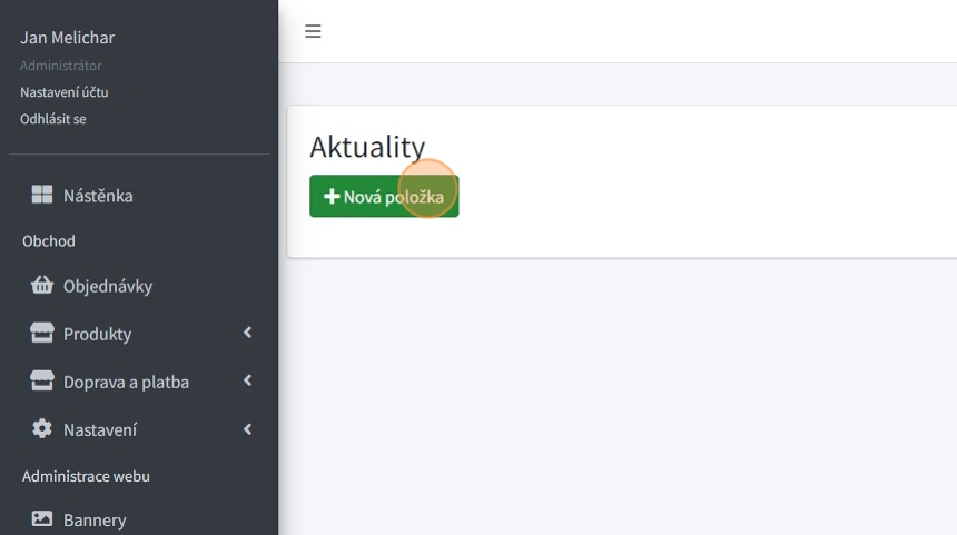 1. Po vytvoření dané kategorie lze pomocí tlačítka "Nová položka" vytvářet jednotlivé články.