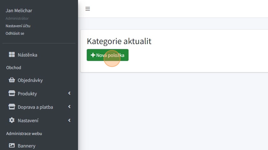 2. Pomocí tlačítka "Nová položka" lze vytvářet nové kategorie článků, do kterých lze poté zařazovat jednotlivé články.