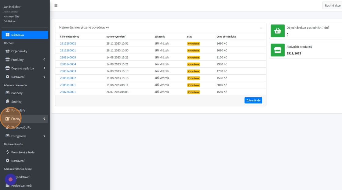 1. Modul "Články"