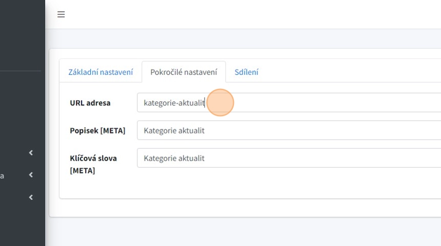 6. V poli "URL adresa" se automaticky (z názvu) generuje URL adresa kategorie článků