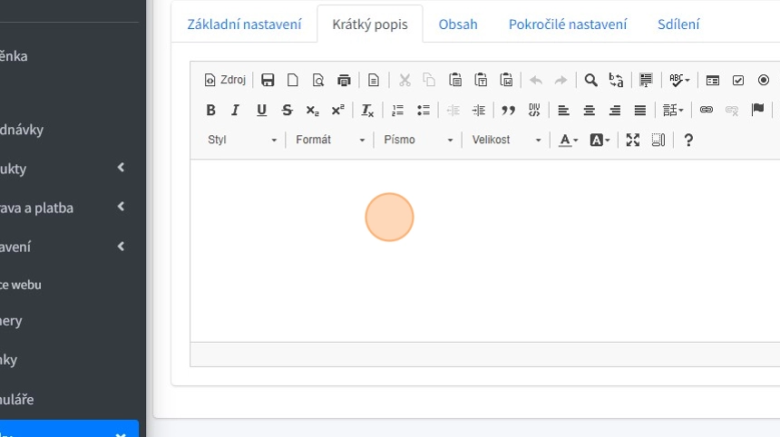 9. V textovém editoru lze vyplňovat krátký text, který se zobrazí na webu ve výpisu článků.