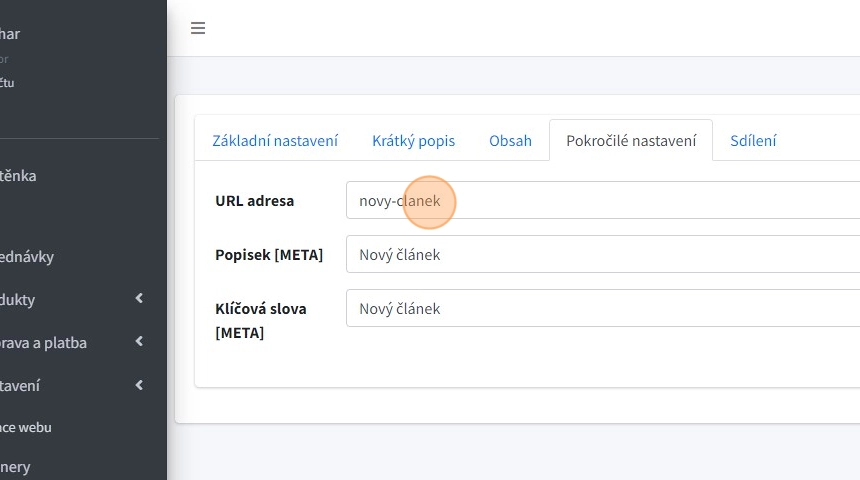13. V poli "URL adresa" se automaticky (z názvu) generuje URL adresa článku