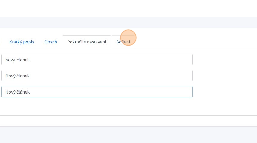 7. Po stisknutím tlačítka "Uložit" vytvoříme článek a získáme přístup pokročilým možnostem editace.